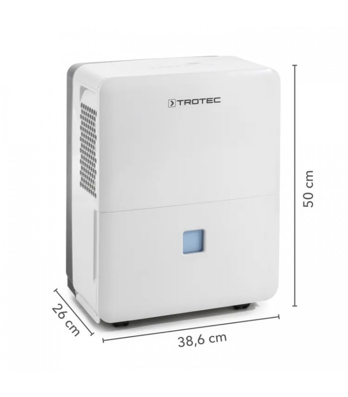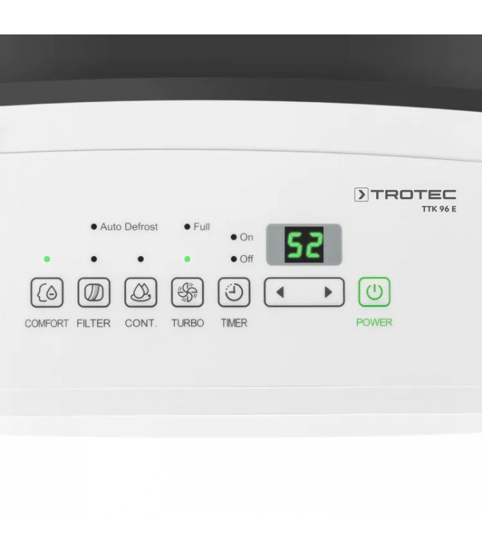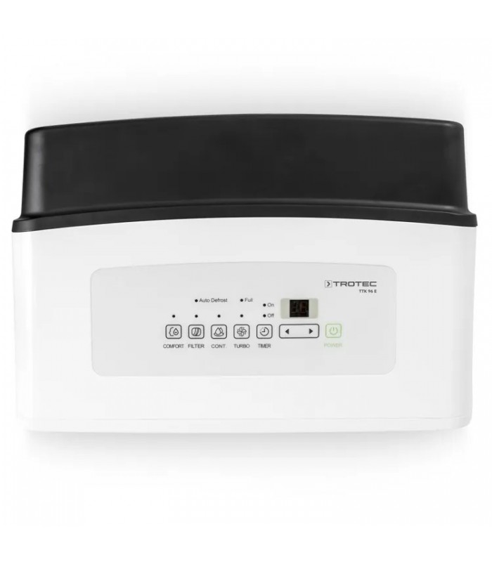 Integrirani odvojeni priključak crijeva omogućuje vanjski odvod kondenzata čak i pri neprekidnom radu bez nadzora – idealan uvjet za trajnu upotrebu, na primjer u hobi prostorijama ili apartmanima za odmor, gdje redovito pražnjenje spremnika nije moguće. Spremnik kondenzata ima kapacitet od 3 litre. Zahvaljujući kotačima i praktičnim ručkama za nošenje, TTK 96 E je također savršeno pripremljen za fleksibilno preseljenje. Rukovanje TTK 96 E je jednostavno i ne zahtijeva puno održavanja zahvaljujući udobnim značajkama.