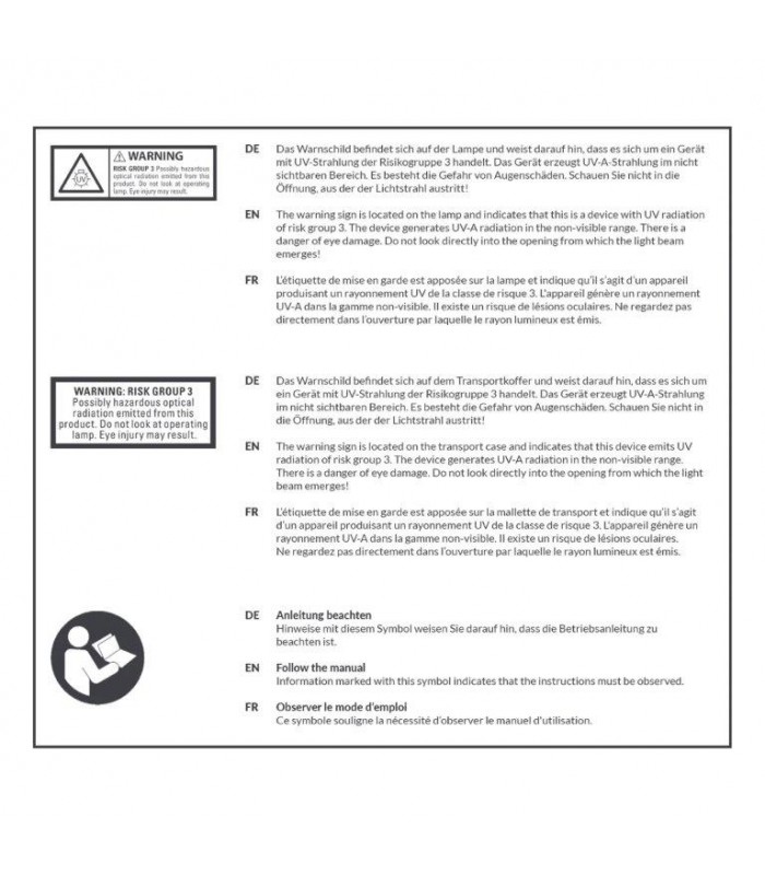 - Izrazito fleksibilan za primjenu od točkaste do poplavne svjetlosti zahvaljujući bezstupanjskom fokusiranju UV-A snopa